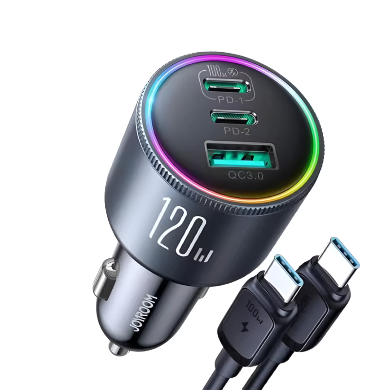 Our 120W Super Fast Car Charger stands out with its exceptional power output and ability to charge three devices at once. The combination of rapid charging capabilities, efficient cooling, and universal compatibility ensures that you can power up your essential gadgets quickly and safely. The LED light feature and durable design add convenience and longevity, making it a superior choice for any driver looking to enhance their in-car charging experience.