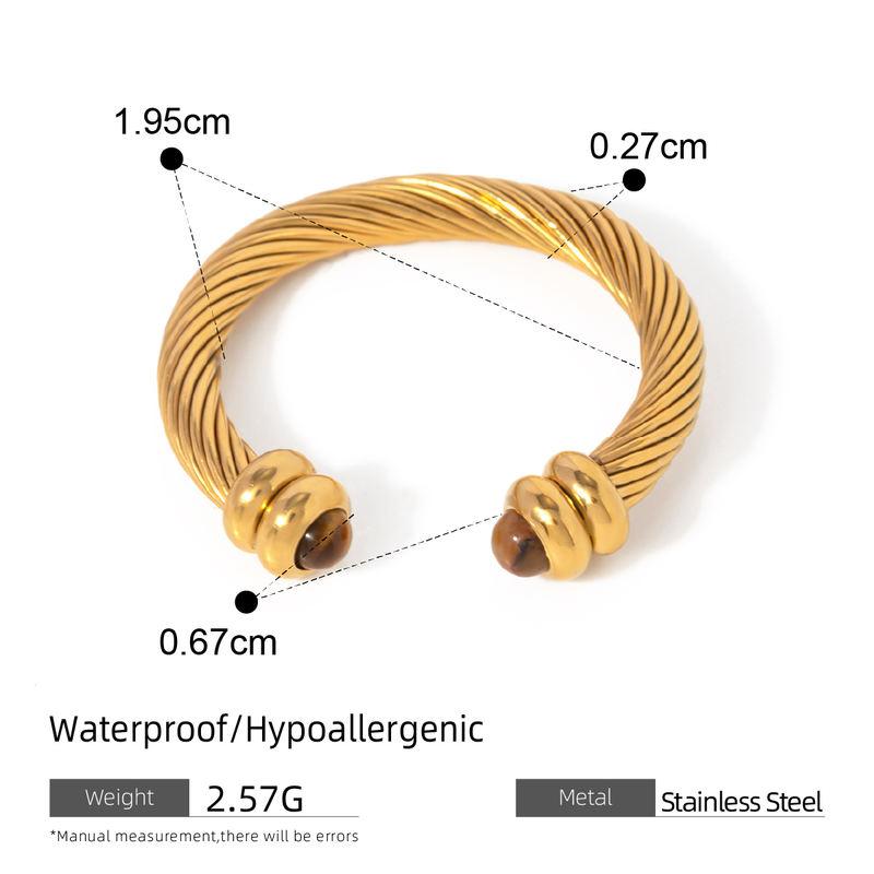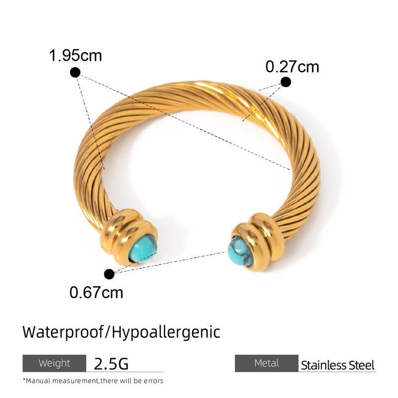 The 18K Gold Plated C-Shaped Twisty Open Ring is more than just a piece of jewelry; it’s a statement of elegance and modernity. Its distinctive C-shape and twist design create a dynamic visual effect, while the natural stone inlay adds an element of nature’s beauty, making it a perfect blend of sophistication and style.