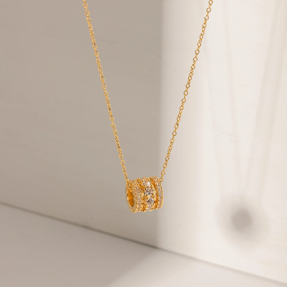 Make a lasting impression with this exquisite circled zircon pendant necklace, expertly crafted with 18K gold plating over durable stainless steel. This necklace features a stunning geometric design that adds a sophisticated charm to any outfit, whether you’re dressing for an anniversary, wedding, or party. The shimmering zircon pendant catches the light beautifully, offering just the right amount of sparkle to elevate your look.