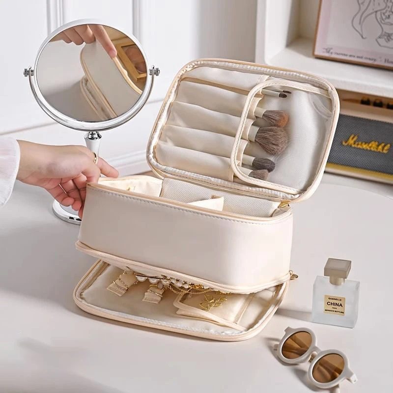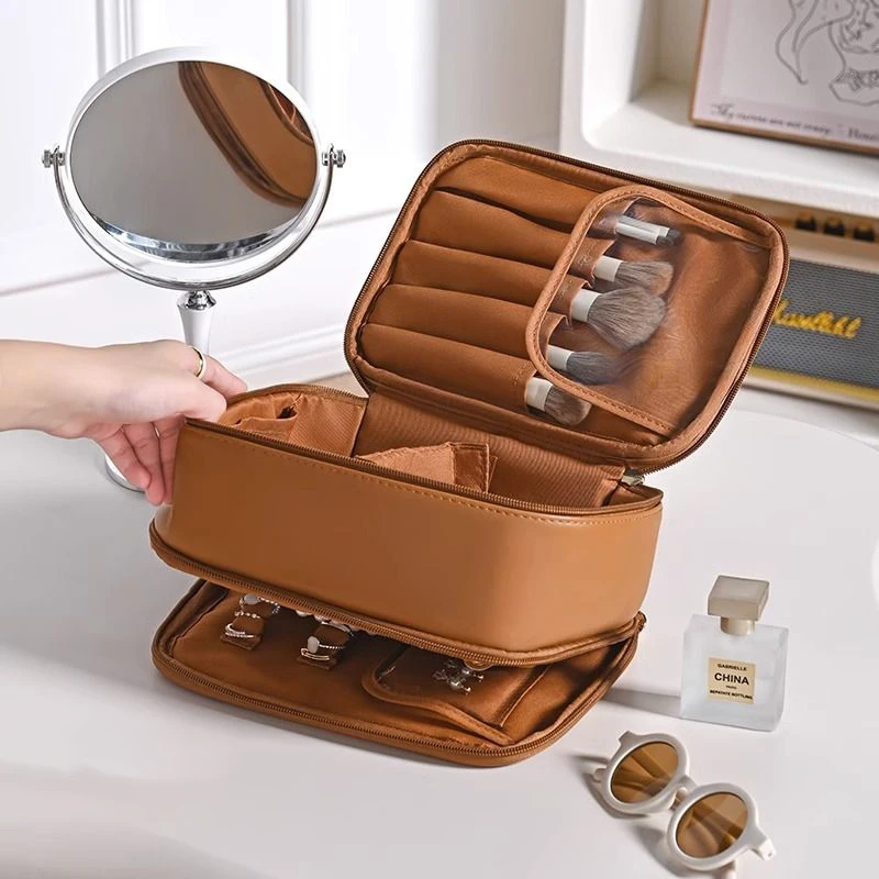 Meet the perfect travel companion for all your beauty and jewelry needs. Our 2-in-1 Makeup Brushes Organizer combines style with functionality, offering a versatile solution for organizing your cosmetics and accessories. Whether you’re heading on a weekend getaway or a long vacation, this waterproof cosmetic bag ensures that everything you need is neatly stored and easily accessible.