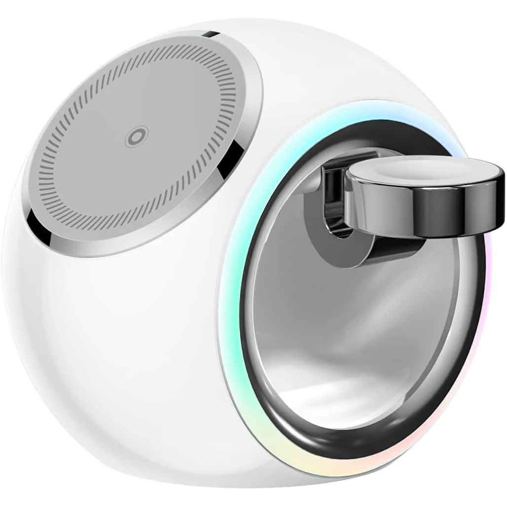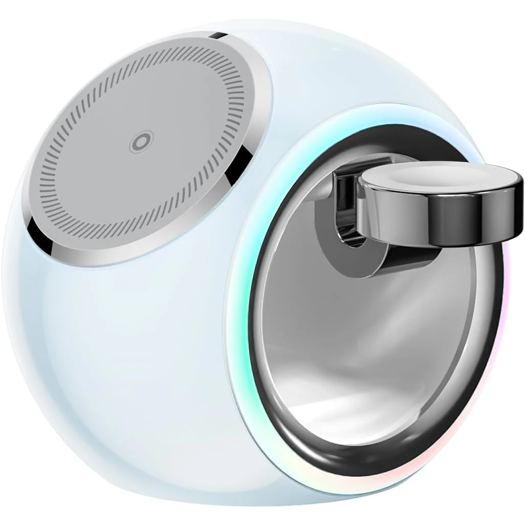 Streamline your charging experience with this 3-in-1 wireless charging stand, designed to charge your iPhone, AirPods, and smartwatch simultaneously. Featuring a sleek and futuristic design, this charger not only eliminates the clutter of multiple cables but also enhances your space with a unique color-changing LED light ring. With 360° rotation, adjustable viewing angles, and strong magnetic absorption, it ensures your devices charge securely and efficiently. Whether you’re working, relaxing, or winding down, this stand offers fast, safe charging for all your essentials in one place.