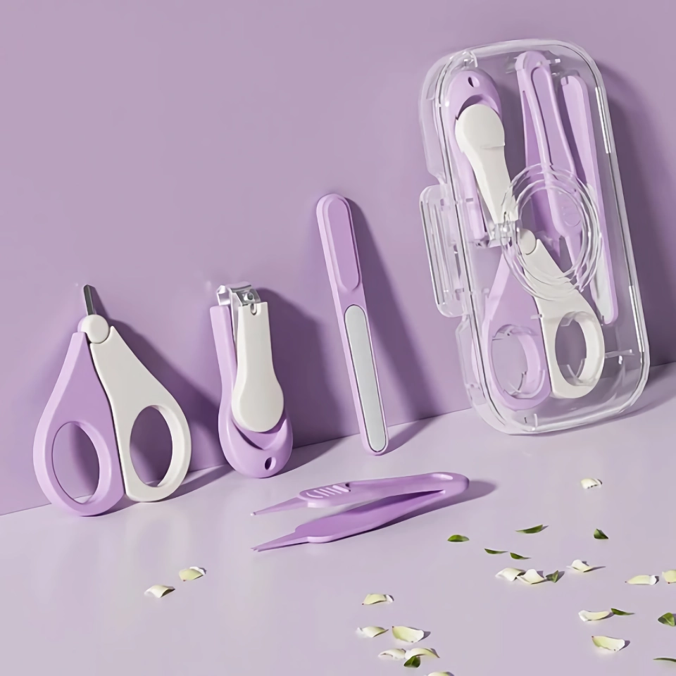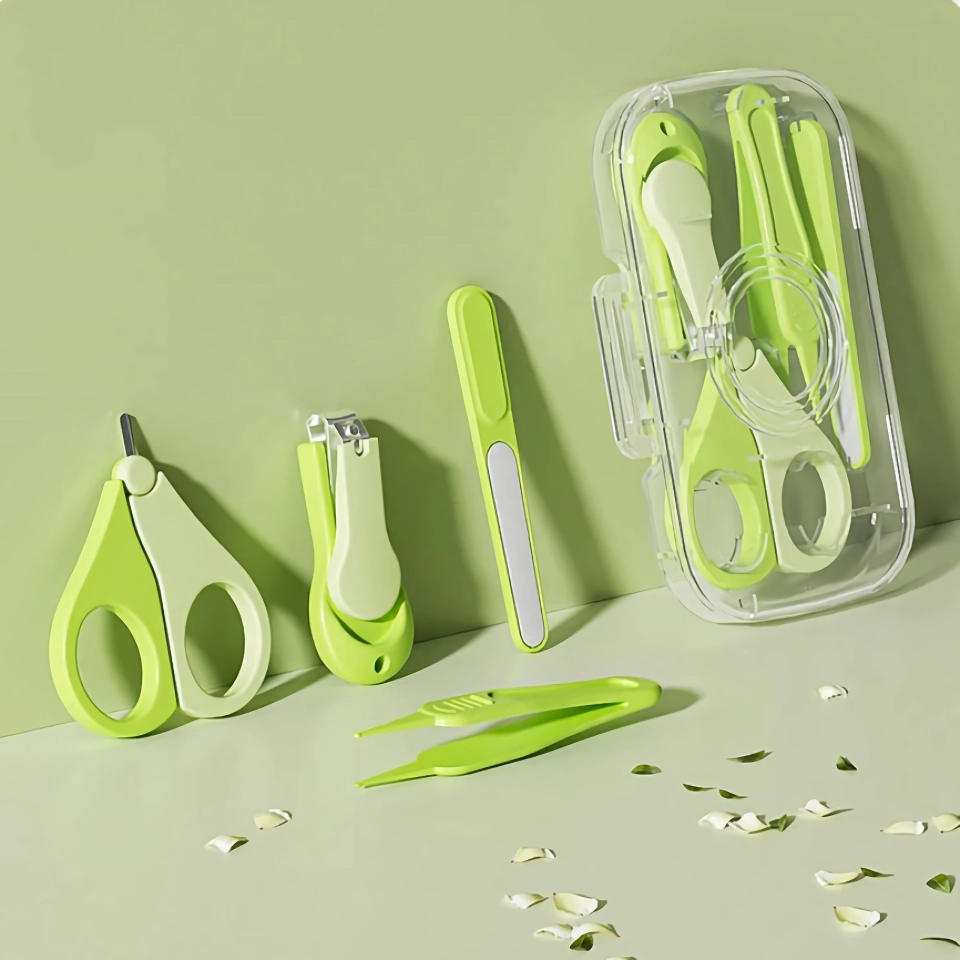 Our Baby Nail Care Set includes four essential tools: a finger trimmer, nail scissors, nail clippers, and a convenient storage box. Each tool is designed with your baby’s safety and comfort in mind, making nail grooming a stress-free experience for both you and your baby.