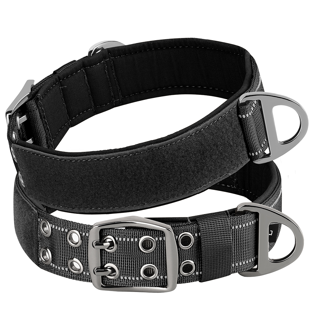not only does this military-style dog collar look stylish but also provides an amazing function. the built-in handle allows me to have immediate control over my pet in high-pressure situations.