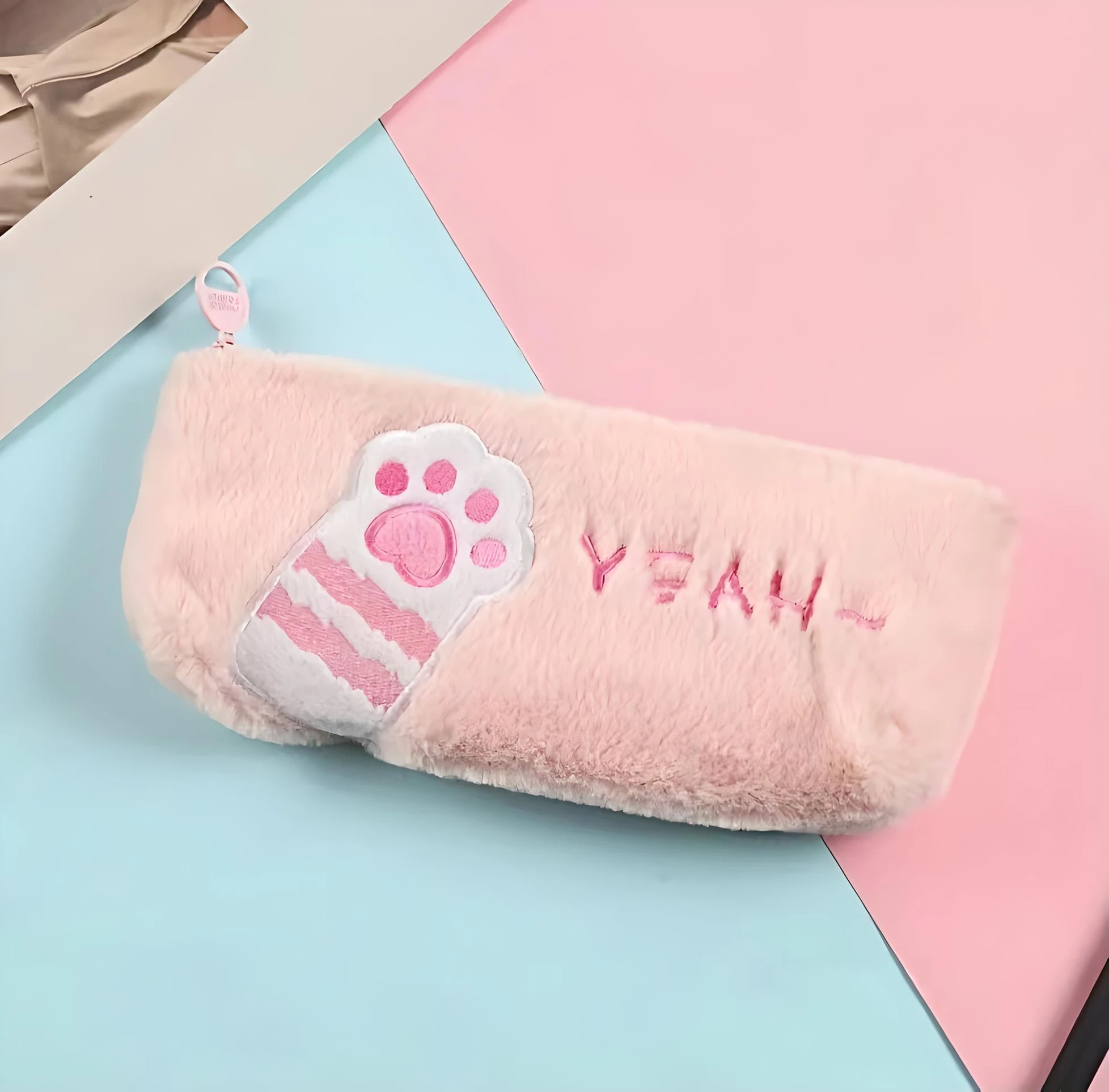 Add a touch of whimsy and charm to your school or office supplies with this Adorable Kawaii Plush Pencil Case featuring an endearing cat paw design. Crafted from soft plush material, this pencil case is not only functional but also incredibly cute, making it a delightful addition to your stationery collection.