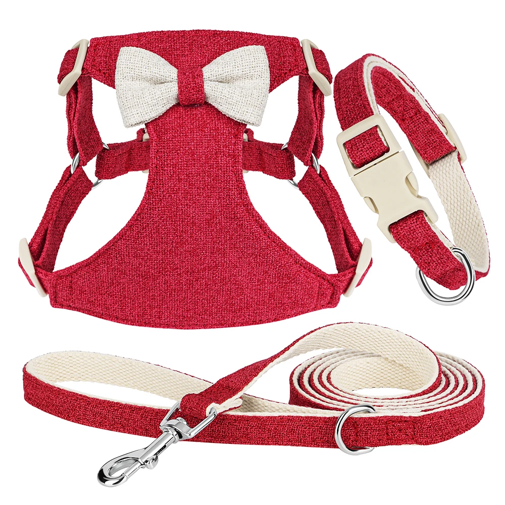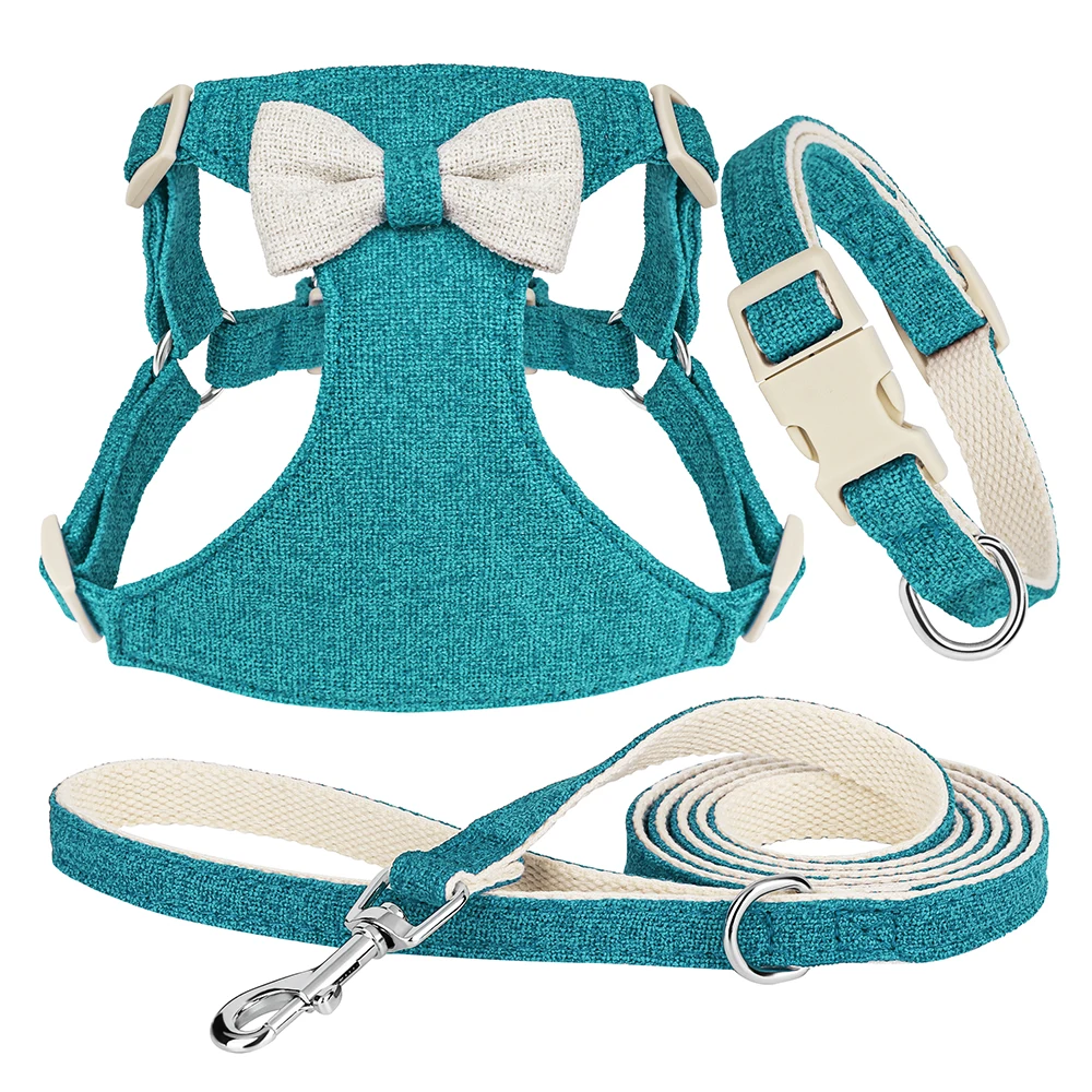 Our collar, harness, and leash set is not just about looks—it’s built for practicality. The quick-release feature ensures that you can quickly and safely secure or free your pet. The breathable material provides comfort during all seasons, preventing overheating or irritation. Plus, the adorable bowknot gives your dog a charming look that’s sure to turn heads.