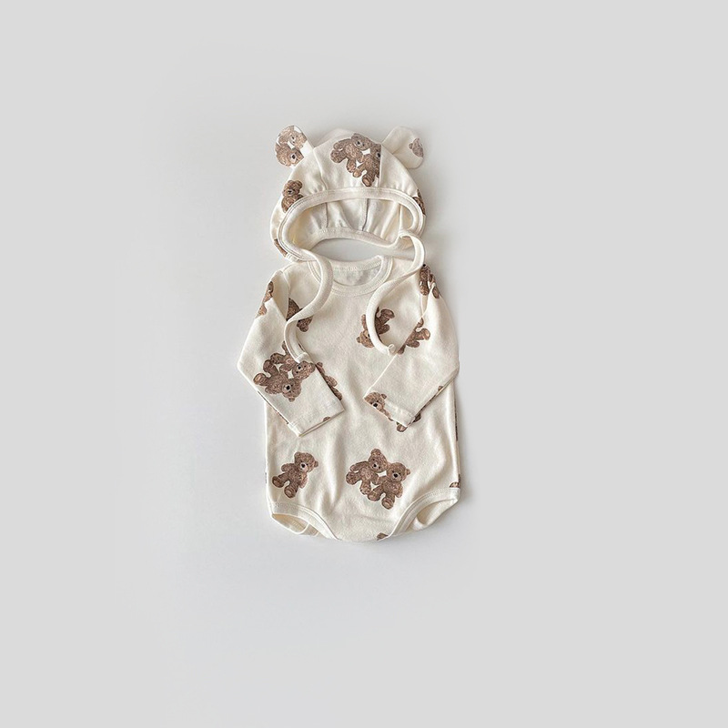 Dress your newborn in the cutest and coziest outfit this autumn with our Autumn Cartoon Bear Romper Suit. This charming 3-piece set includes a long-sleeve romper, a snug hat, and a cozy coat, all featuring an adorable cartoon bear print. Crafted from soft, high-quality cotton, this outfit ensures your baby stays comfortable and stylish during the cooler months.