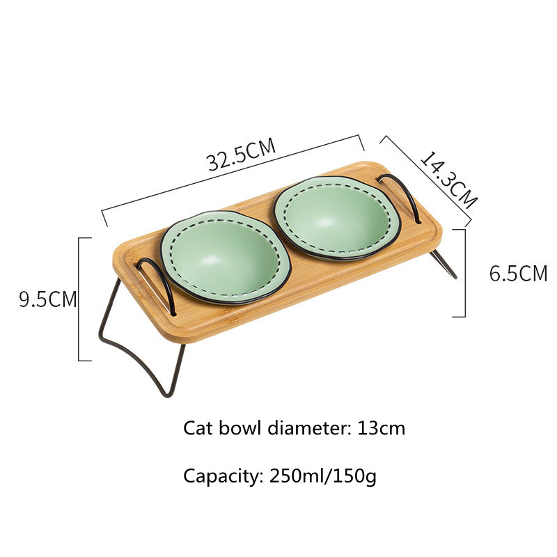 Elegant Ceramic Dog & Cat Bowl with Wood Stand