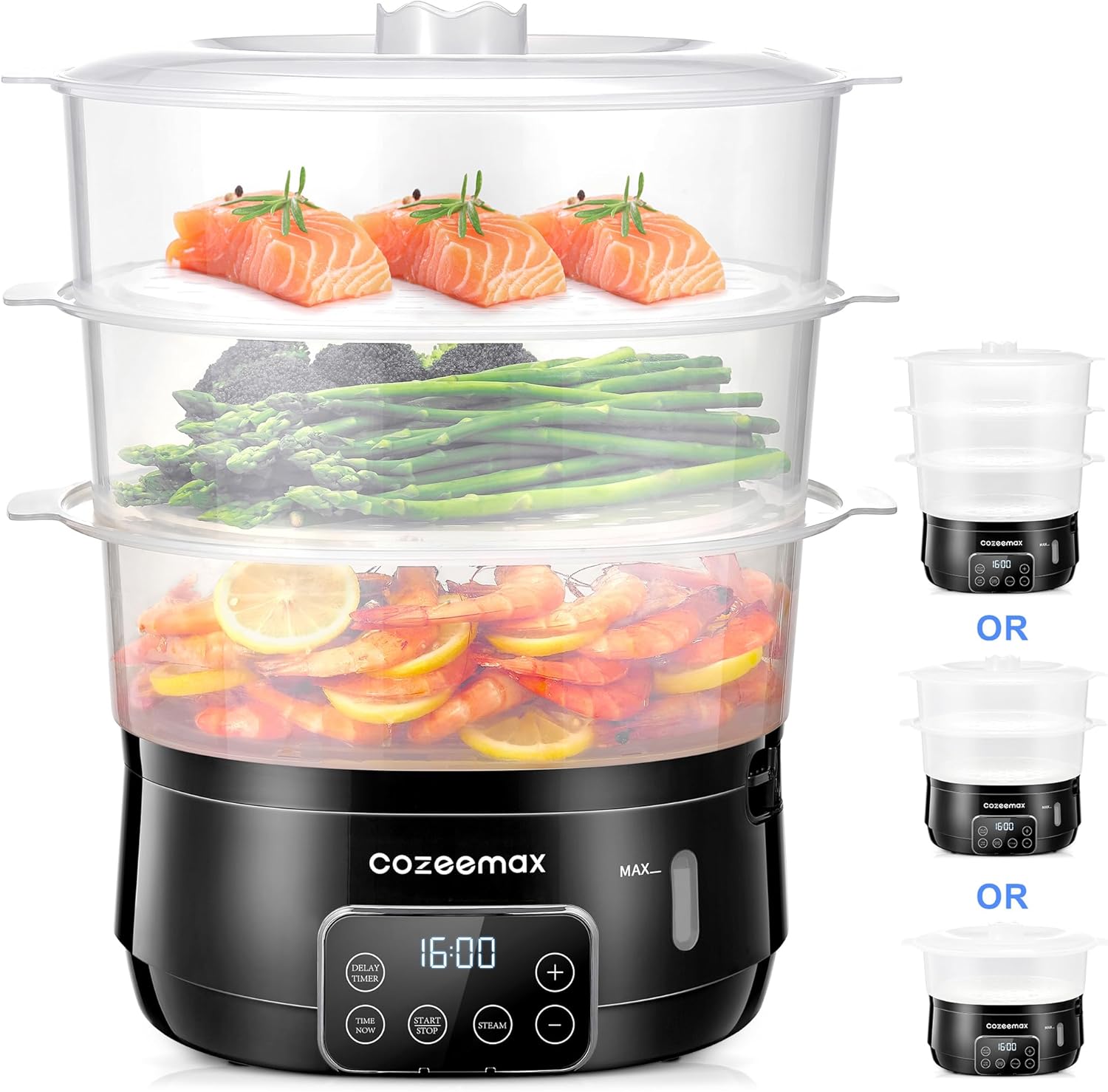 Electric Food Steamer 13.7QT, 3-Tier Digital Steamer 800W with Auto Shut-Off