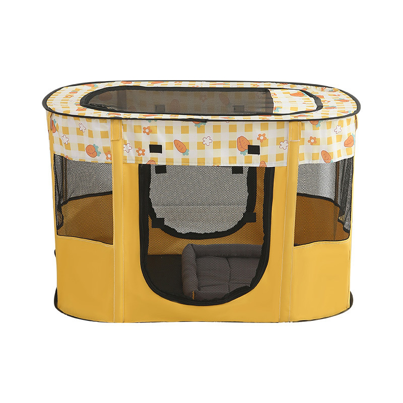 The Foldable Large Cat Maternity Tent is crafted from durable Oxford cloth, ensuring that it withstands daily use while remaining soft and comfortable for your cat. Available in three delightful colors—yellow, pink, and blue—this pet tent not only serves a functional purpose but also adds a touch of style to your home. The large sunroof at the top enhances breathability, creating a fresh and airy environment, while the roller shutter door design allows your cat to move in and out freely.