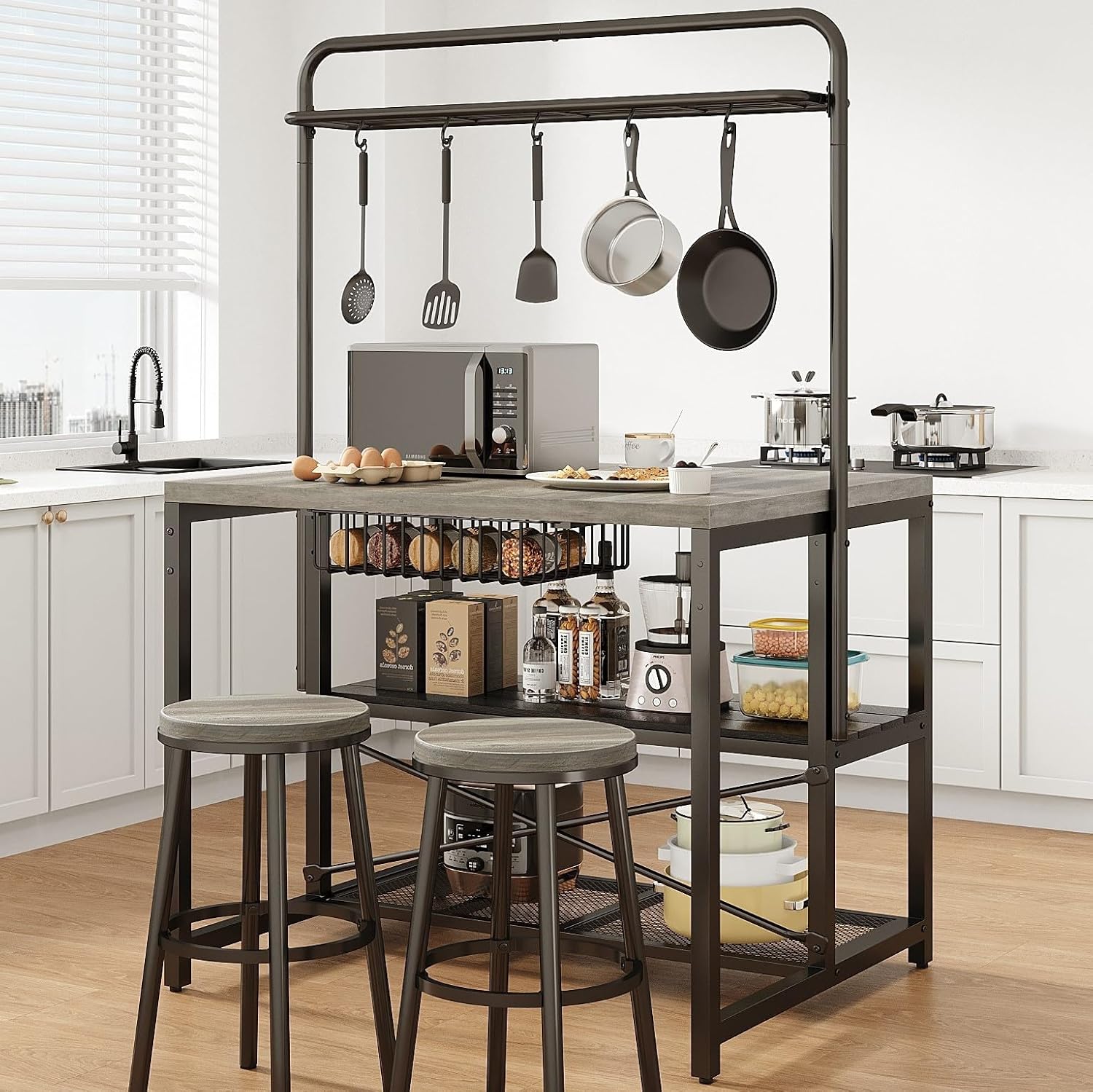 - Versatile design – Functions as a kitchen island, baker’s rack, or bar table.