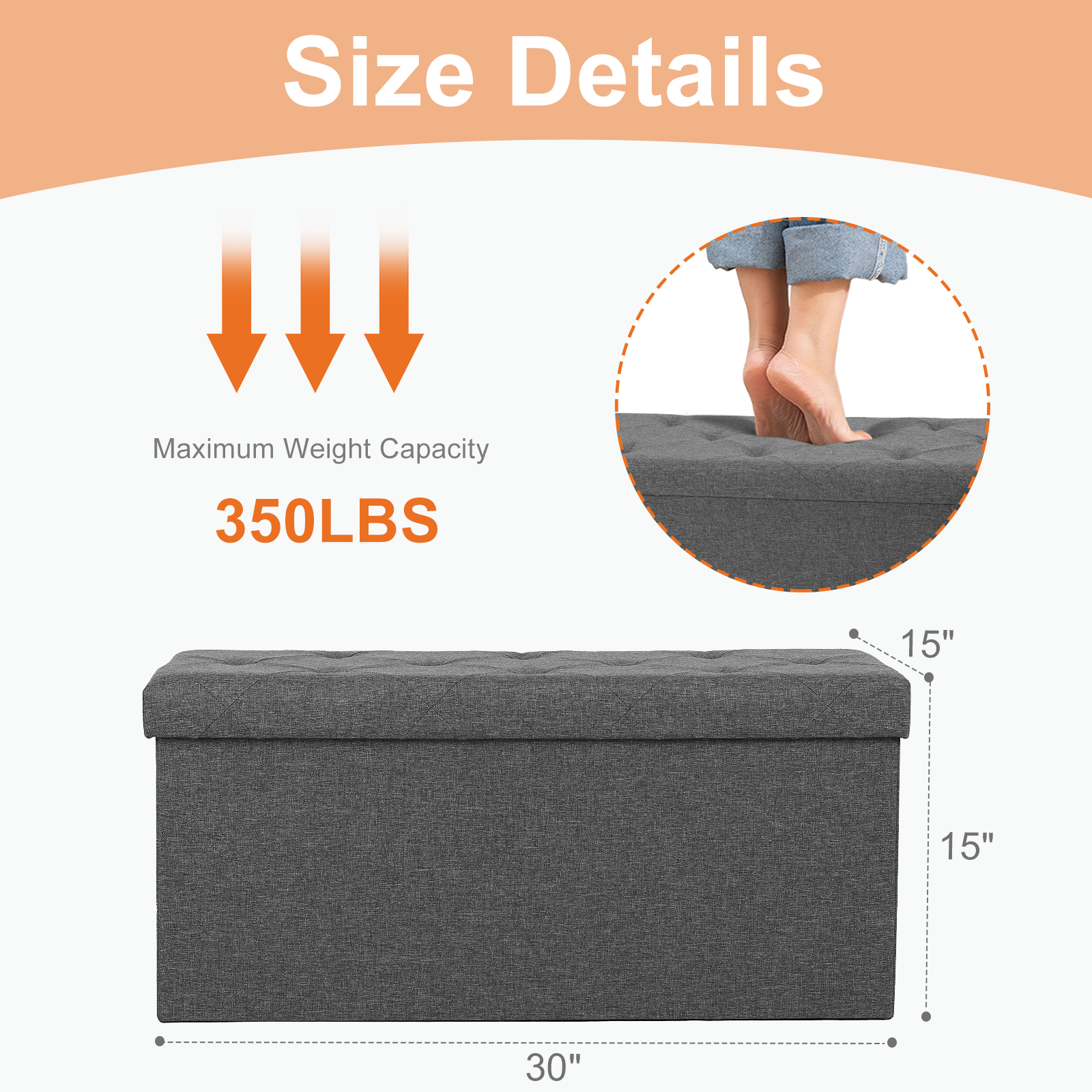 Not only does it help keep your home neat and tidy, but its sturdy construction also ensures that it will stand the test of time, supporting up to 350 pounds. The ability to fold it away when not in use makes it an ideal choice for small spaces, and the simple, quick assembly process means you can enjoy your new storage bench in no time.