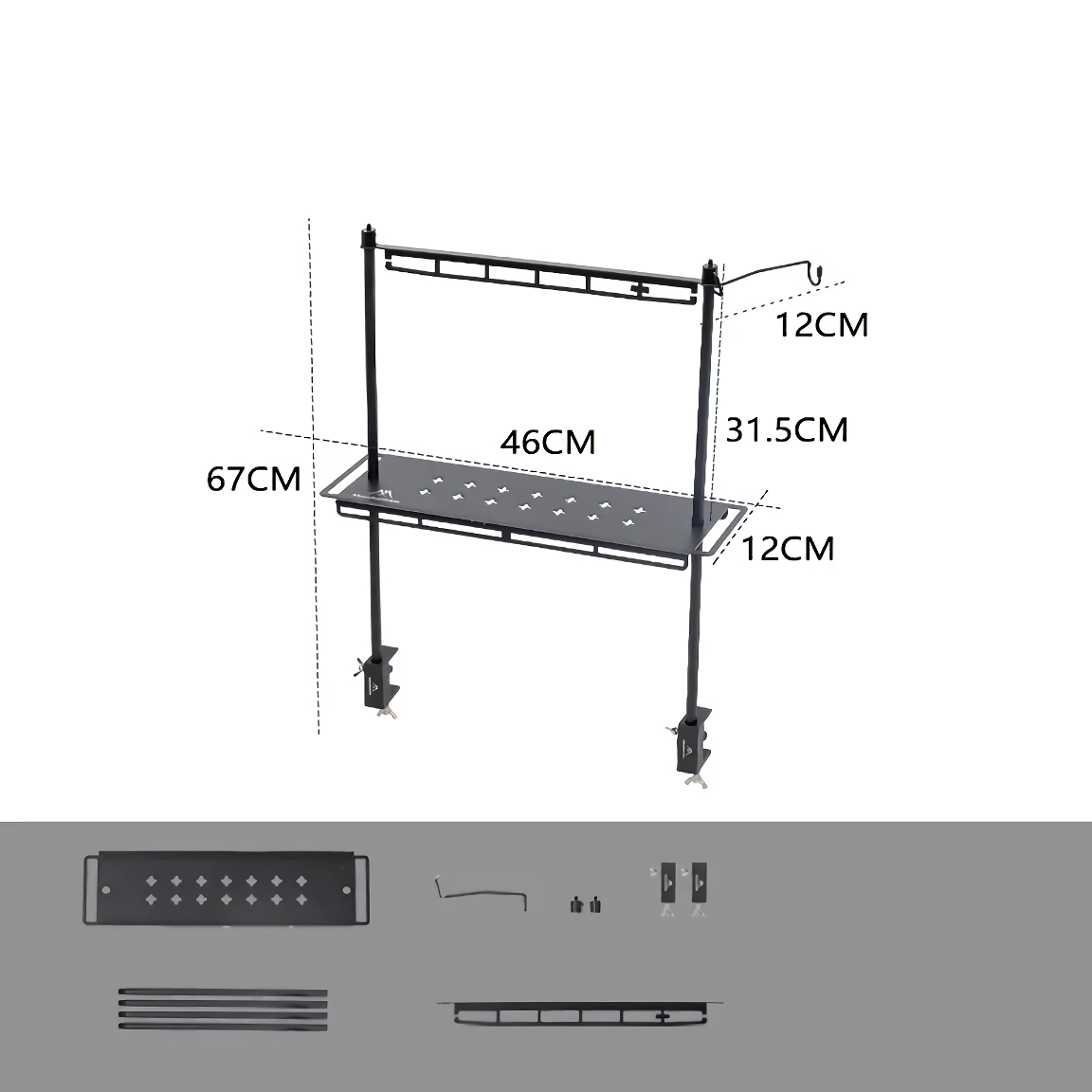 Meet the ultimate companion for your camping adventures: the Multi-Functional Portable Table Storage Rack! Designed for outdoor enthusiasts, this versatile shelf not only organizes your tableware but also features a convenient light hook for those late-night gatherings. With its sleek aluminum alloy construction, this rack combines durability with practicality, making it an essential addition to your outdoor gear.