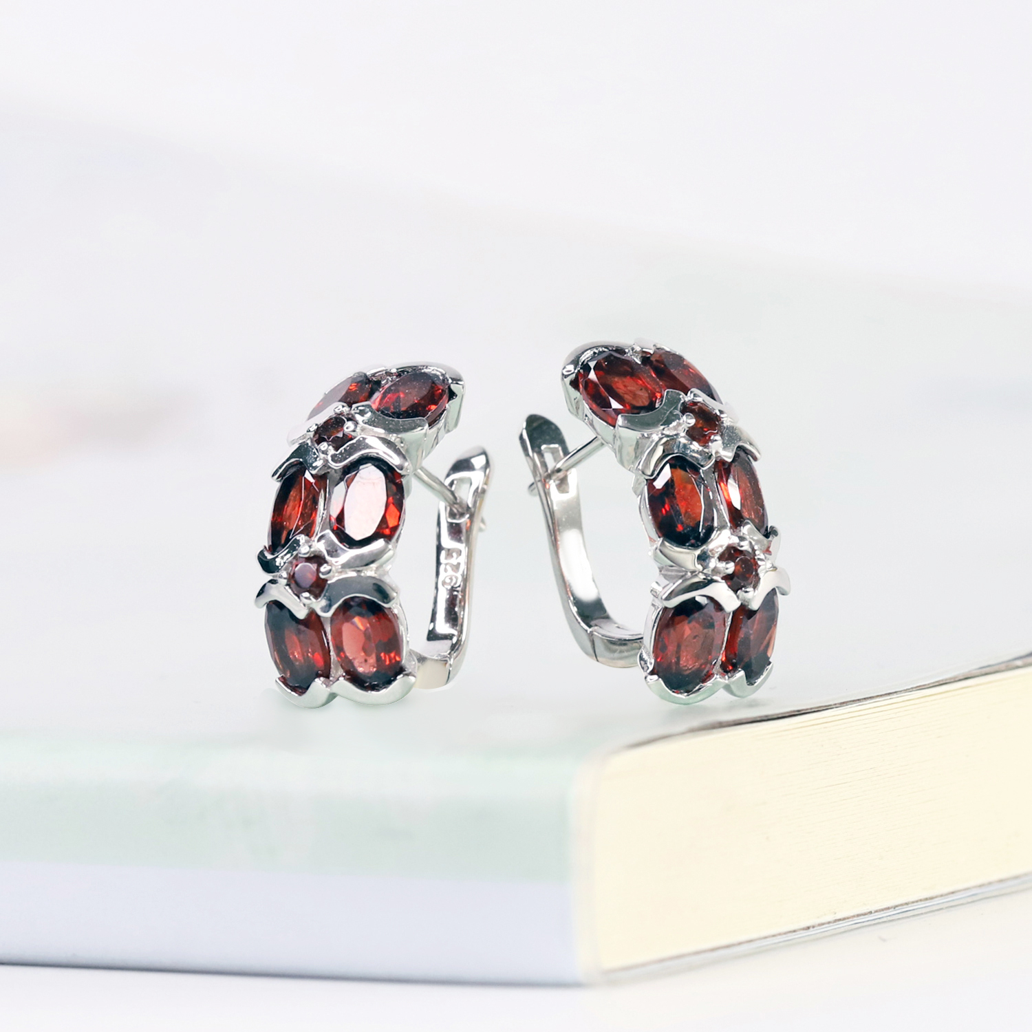 - Natural Garnet Gemstone: The earrings feature a genuine garnet gemstone, known for its captivating red hue that symbolizes passion and strength.