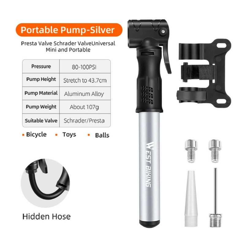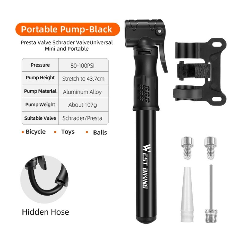 Never let a flat tire ruin your cycling adventure again! Our Portable Mini Bike Pump is the perfect companion for any cyclist, designed for both road and mountain bikes. Made from durable aluminum alloy, this compact pump is lightweight yet sturdy, making it easy to carry on any ride. With a pressure capacity of 80-100 PSI, it provides efficient inflation to get you back on the road quickly.