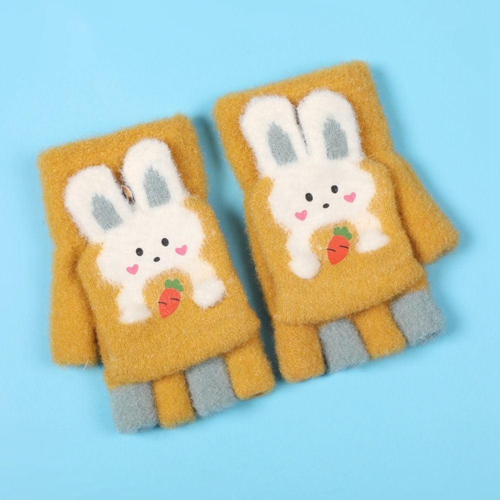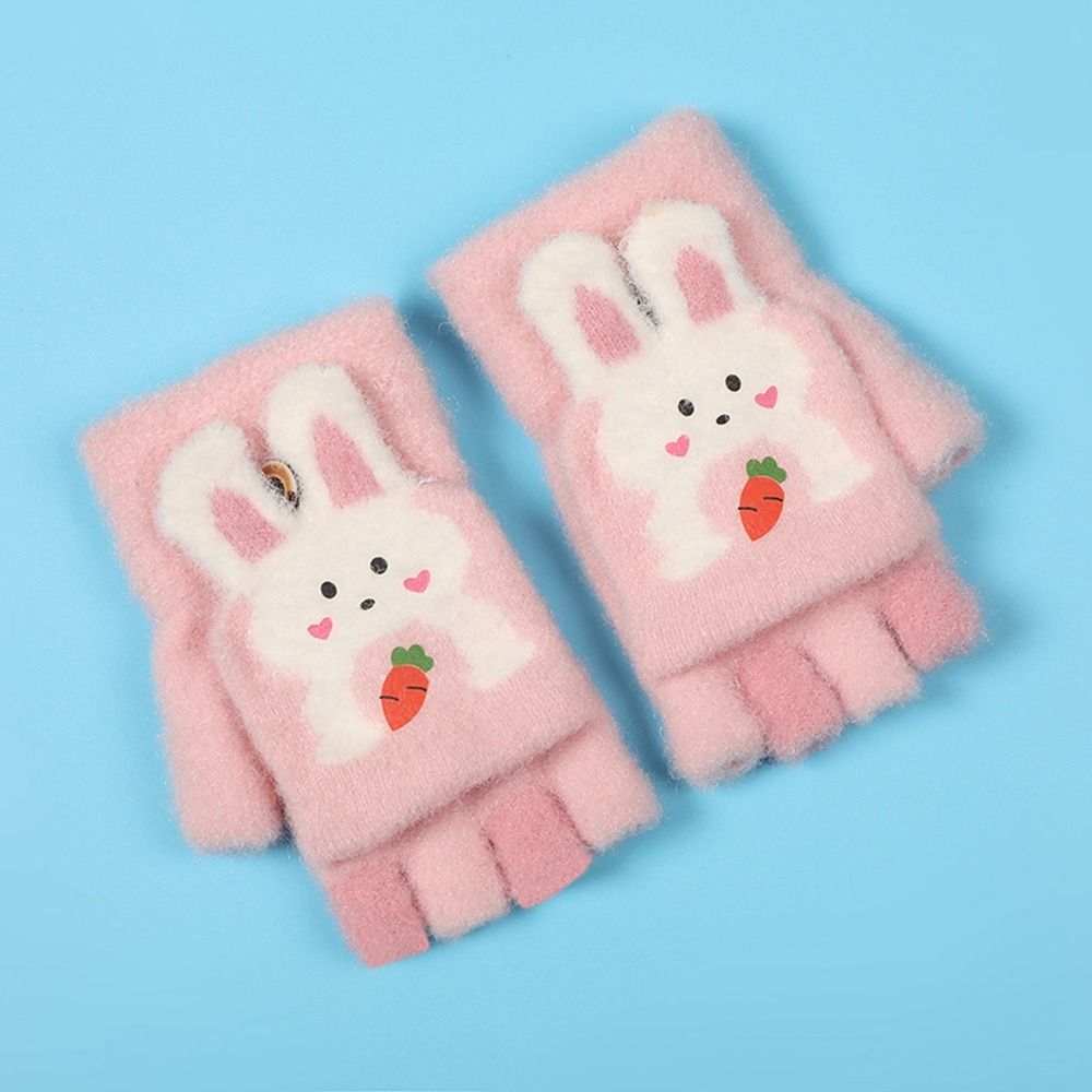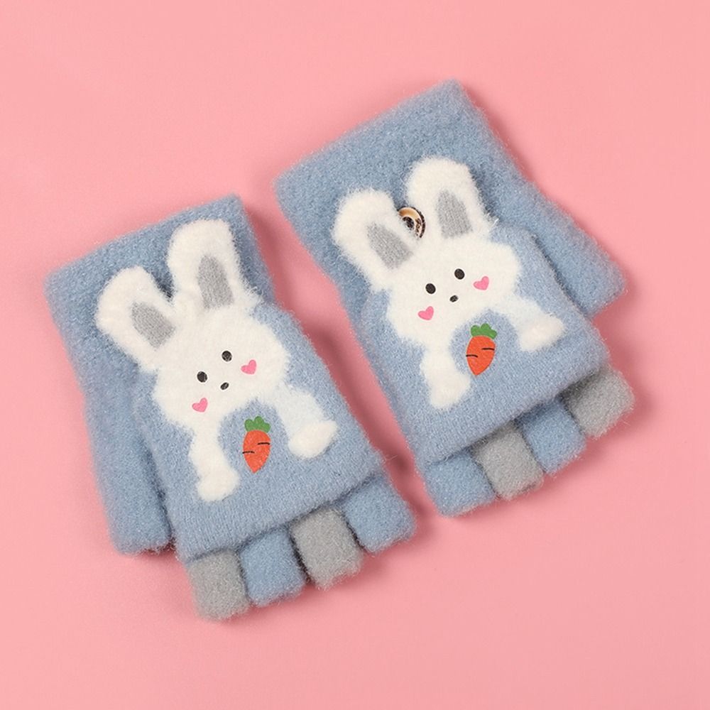 - Design: Cute rabbit cartoon pattern with a practical half-finger flip cover design.