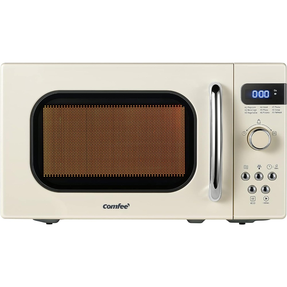 Don’t let the retro look fool you—this microwave is packed with features designed for convenience and efficiency. The large LED digital display, simple control panel, and push-button door release make operation effortless. With 10 power levels, you can precisely control the cooking strength, while the 9 pre-programmed menus let you cook popular items like pizza, frozen veggies, beverages, and dinner plates with just one touch.