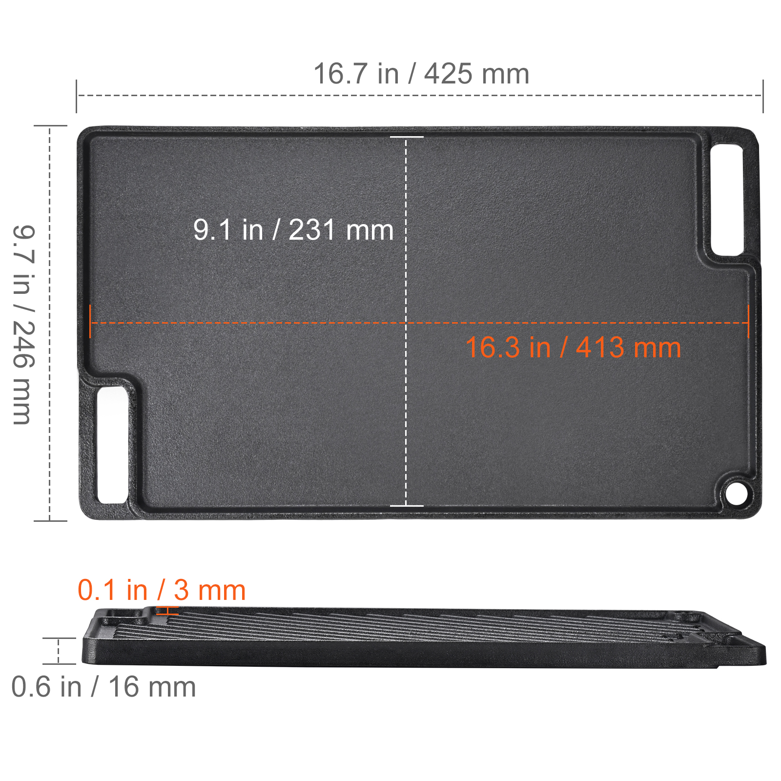 - Dual-Sided Design: Flat side for grilling and ridged side for searing, offering versatility for various cooking needs.