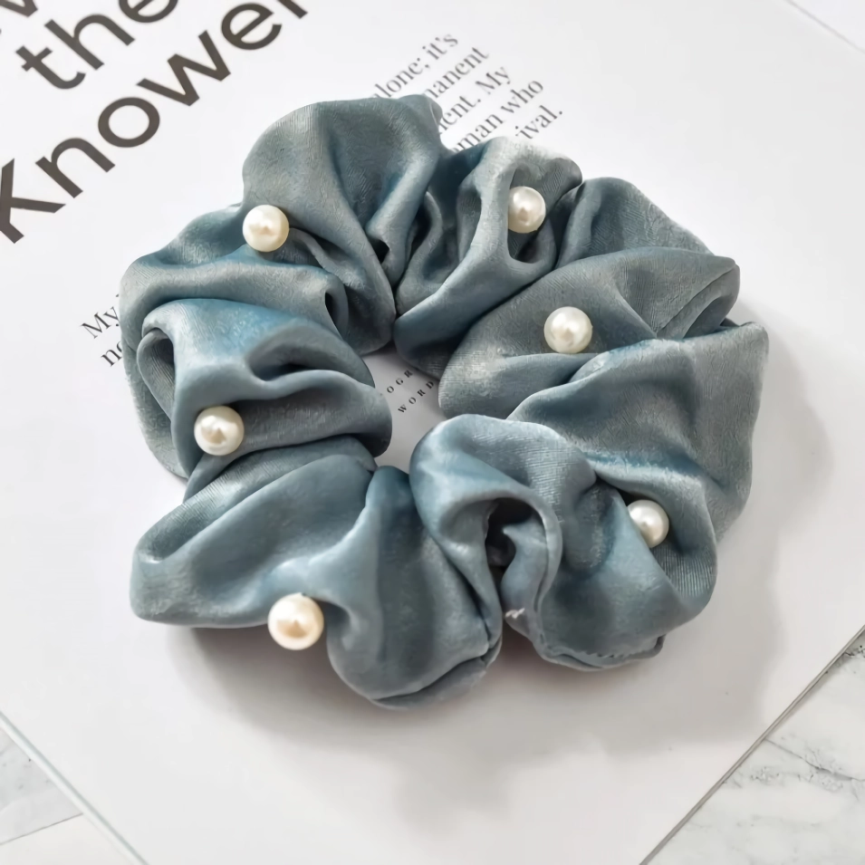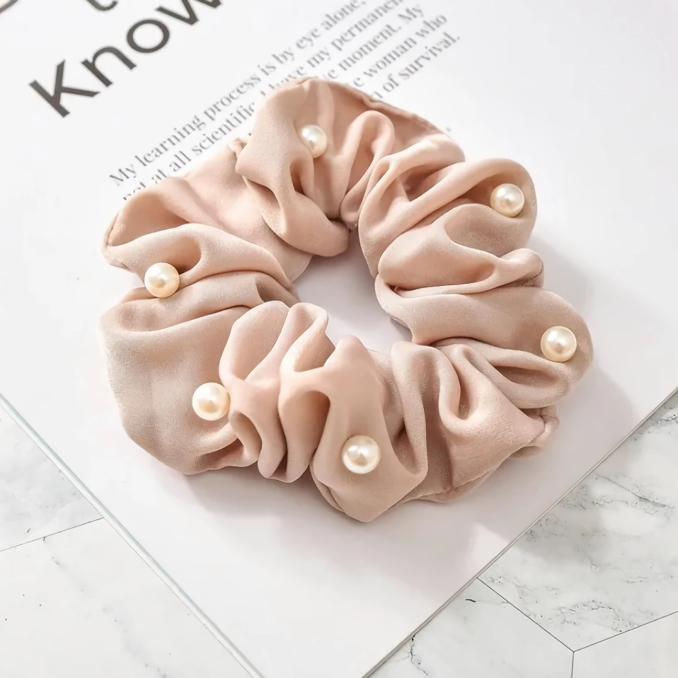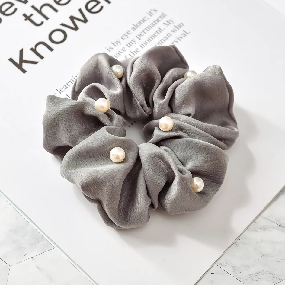 Elevate Your Look with Our Satin Silk Pearl Hair Scrunchies