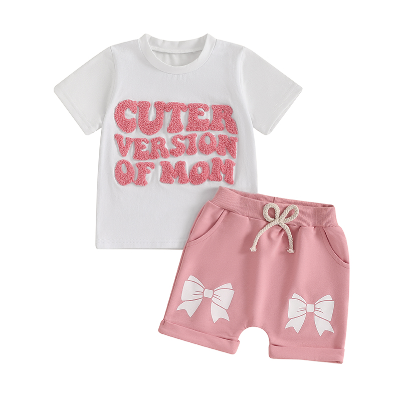 Dress your little one in this adorable Toddler Baby Boys Girls Letter Embroidery T-Shirt & Bow Pattern Shorts Set, designed for comfort and style! This charming 2-piece outfit is perfect for those warm summer days and is sure to keep your toddler both cool and fashionable. The set includes a cute letter-embroidered short-sleeve t-shirt paired with elastic waist shorts featuring a fun bow pattern. Ideal for casual outings, playdates, and sunny days, this outfit is as practical as it is stylish.