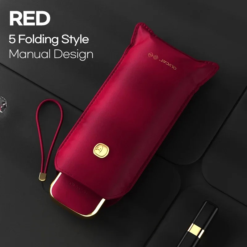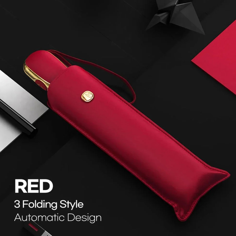 - Elegant and Functional: Available in five vibrant colors – golden, red, blue, pink, and black – this umbrella not only protects you from the elements but also complements your style. The high-density pongee cloth with a Nyara matte black coating offers additional sun protection while being eco-friendly and smooth to the touch.
