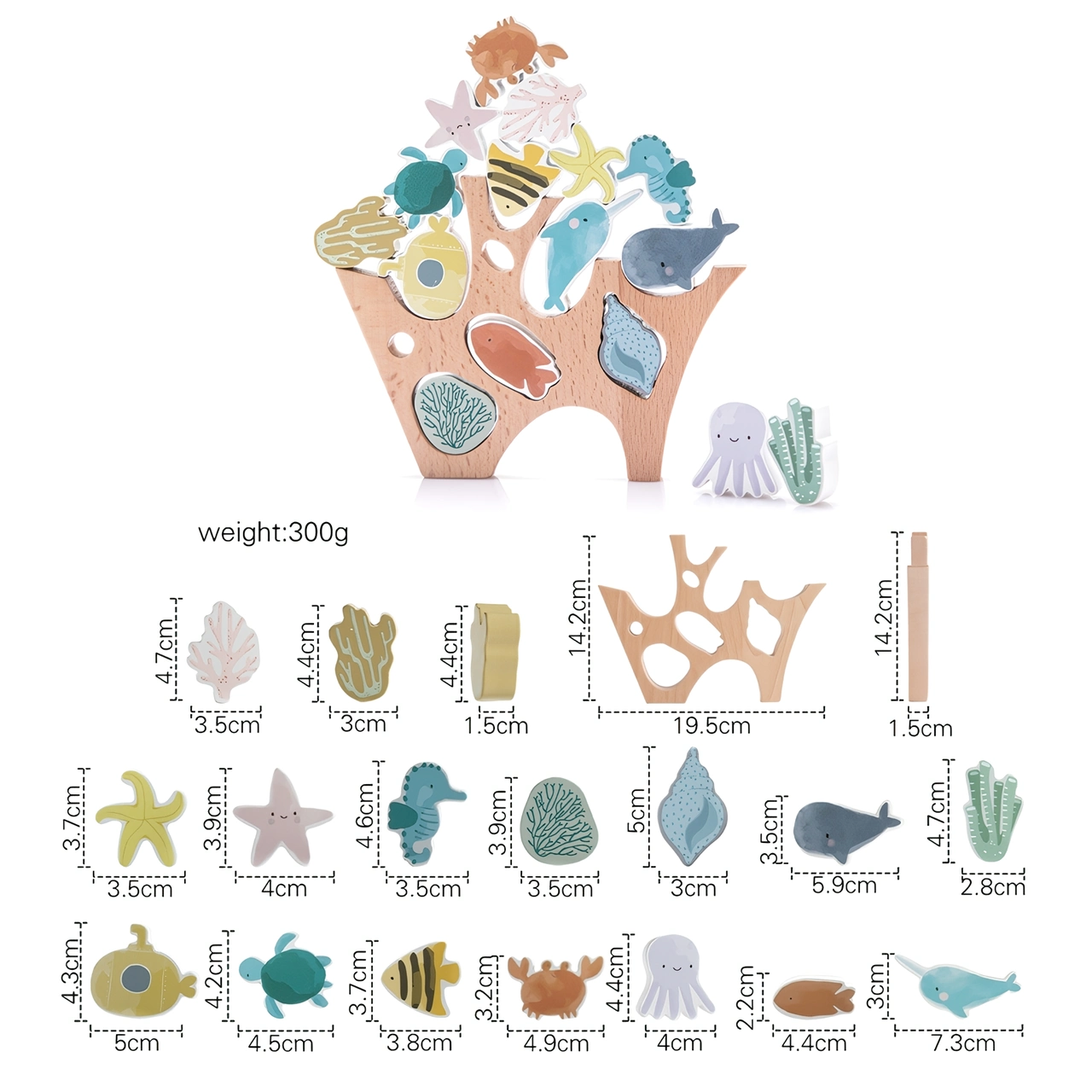 Our Wooden Montessori Ocean Animal Balance Blocks are not just toys; they are tools for learning and development. Crafted from premium, eco-friendly wood, each piece is designed to be safe for children while promoting tactile and cognitive skills. The vibrant and diverse ocean animal shapes encourage children to explore their creativity and develop fine motor skills as they stack and balance the pieces. This toy set aligns with Montessori educational principles, focusing on hands-on learning and self-discovery.